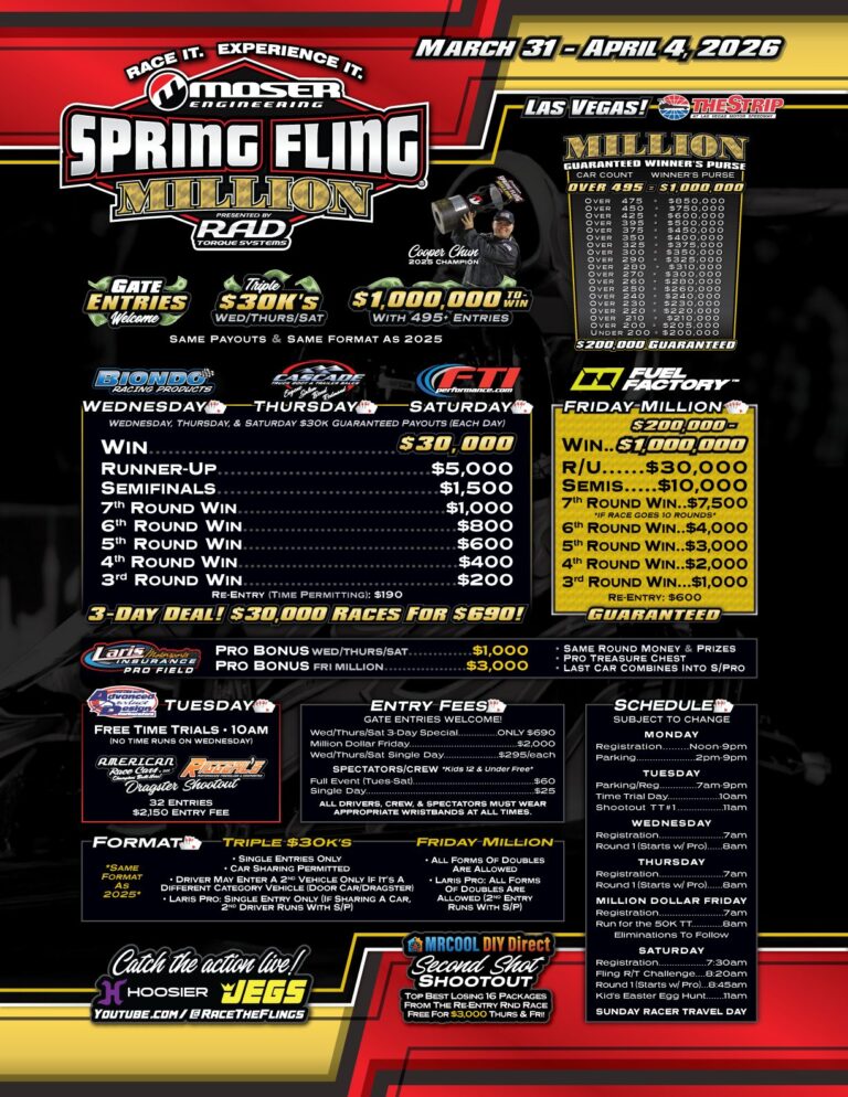 Big Money Bracket RacesBig Money Bracket Races - 2026 Vegas Spring Fling Million Race Results Read More