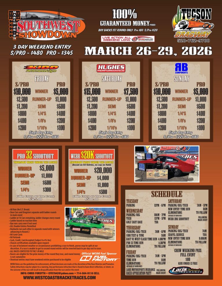 Big Money Bracket RacesBig Money Bracket Races - 2026 Tucson Southwest Showdown Race Results Read More