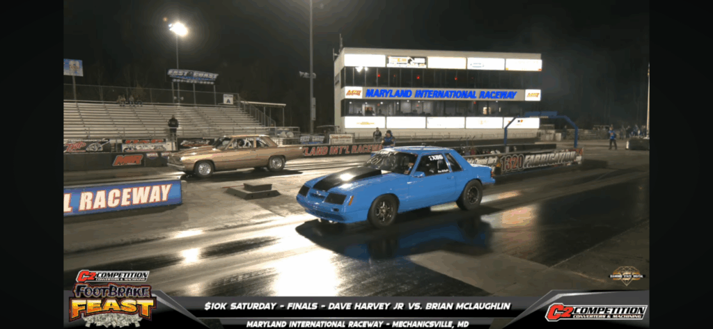 Brian McLaughlin scored the $10K Footbrake win on Saturday at the FRBR Promotions Footbrake Fest. McLaughlin ran dead-on with a 7 to turn on the final win light in his Fox Body Mustang over David Harvey Jr. One more day of racing at Maryland International Raceway is on tap with $7500 on the line. Live Feed can be viewed @Diamond State Digital on Youtube.