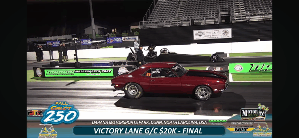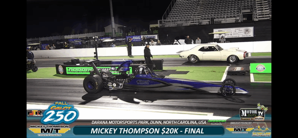 Gabe Ernest scored one for the Door Cars taking the Friday $20K Main Event final round victory over the Dragster of TG Paschal at the FTR Events Fall Galot 250. This event at Darana Motorsports Park in Dunn, NC wraps up on Saturday with another $20K Main Event. Live Feed action can be found on MotorManiaTV’s Youtube channel.