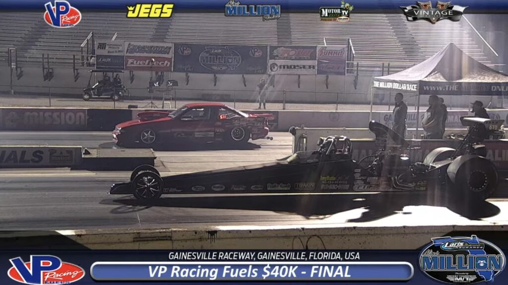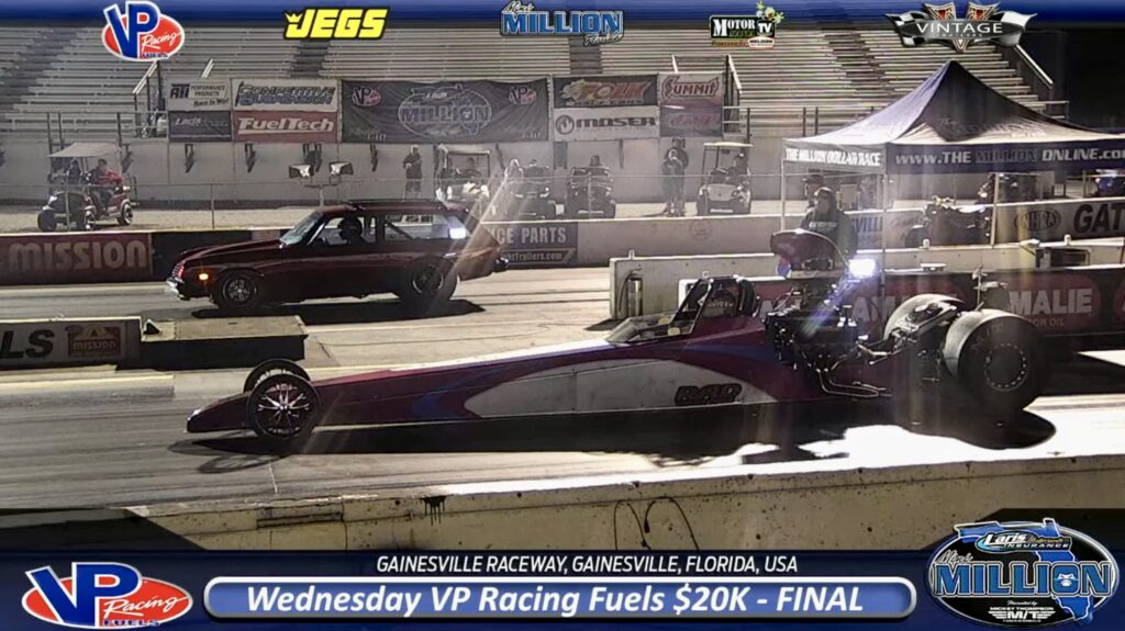 Thursday featured a Dragster vs. Door Car final round to cap off the week’s first $40K-to-win Main Event at the Folk Promotions Mini Million in Gainesville, FL. Score one for the Door Cars as home state racer Gage Burch sat it dead-on with a 0 in his Mustang to score the victory over Anson Brown’s Dragster. Burch also won the No Box side of action, and would advance both of his entries to the Round of 6 cars left. Action continues on Friday with the 2nd of 4 $40K-to-win Main Events. To follow along with the Mini Million, head on over to MotorManiaTV on Youtube for Live Stream coverage all weekend.