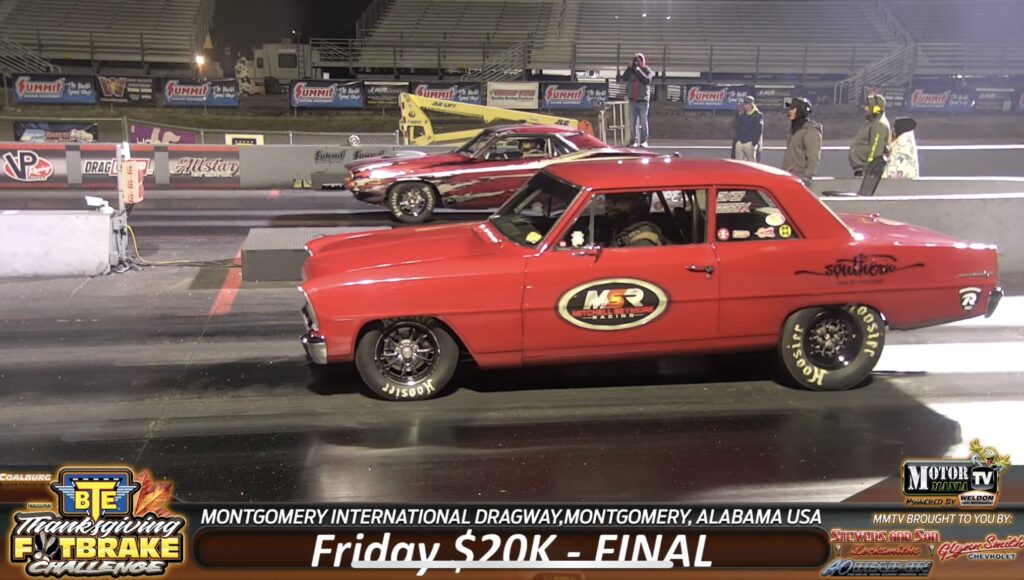 Racers traveled in from across the Eastern Half of the U.S. for the Inaugural BTE Thanksgiving Footbrake Challenge presented by Coalburg Racing Promotions in Montgomery, AL. Mitchell Seymore added yet another win at Montgomery in an incredible 2025 season to his resume, this time taking the $20K-to-win top prize over fellow local champion KC Pesnell. Interestingly enough, both were this season’s Montgomery Int’l Dragway track champions with Seymore taking the No Box title & Pesnell the Box class champion. Another standout performance was Footbrake ace Kevin Pollard carrying both of his entries down to the Quarterfinals (6 Cars Left) before bowing out. Racing action continues on Saturday with the $25K-to-win Main Event. To follow along with all of the action, tune into the Live Feed at Motormania TV on Youtube.