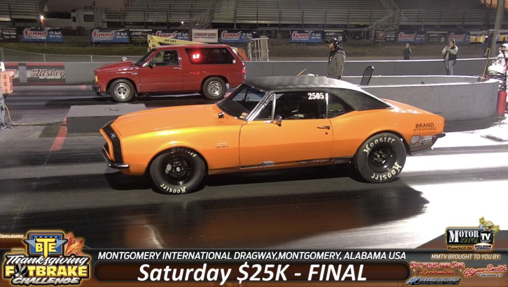 Saturday’s action crowned the weekend’s big winner with the $25K Main Event at the Inaugural BTE Thanksgiving Footbrake Challenge presented by Coalburg Racing Promotions in Montgomery, AL. Georgia’s Michael Brand emerged victorious laying down a .015 package with his Camaro in the final round over South Carolina’s Trevor Jenkins and his Blazer. Brand adds a $25K Footbrake winners check to his resume to go along with his many NHRA Stock & Super Stock titles. To go back and relive all the action from this great event, check out the Live Feed at Motormania TV on Youtube.